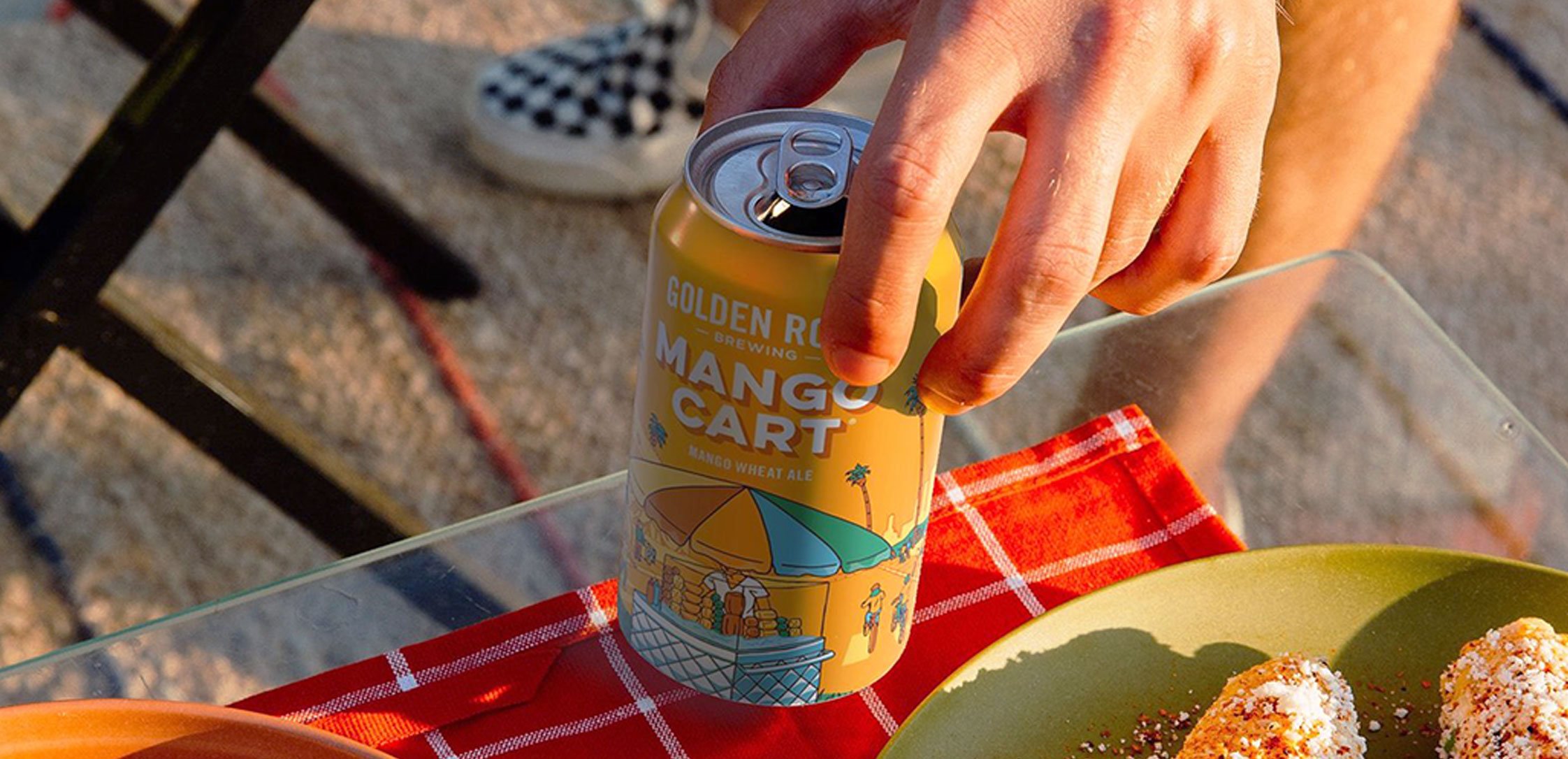 Heyo, beer lovers! The name's Mango Cart, and I'm here to bring some tropical sunshine into your life. I'm the first in Golden Road's fruited wheat beer series, inspired by the vibrant and colorful fruit cart vendors of Los Angeles.