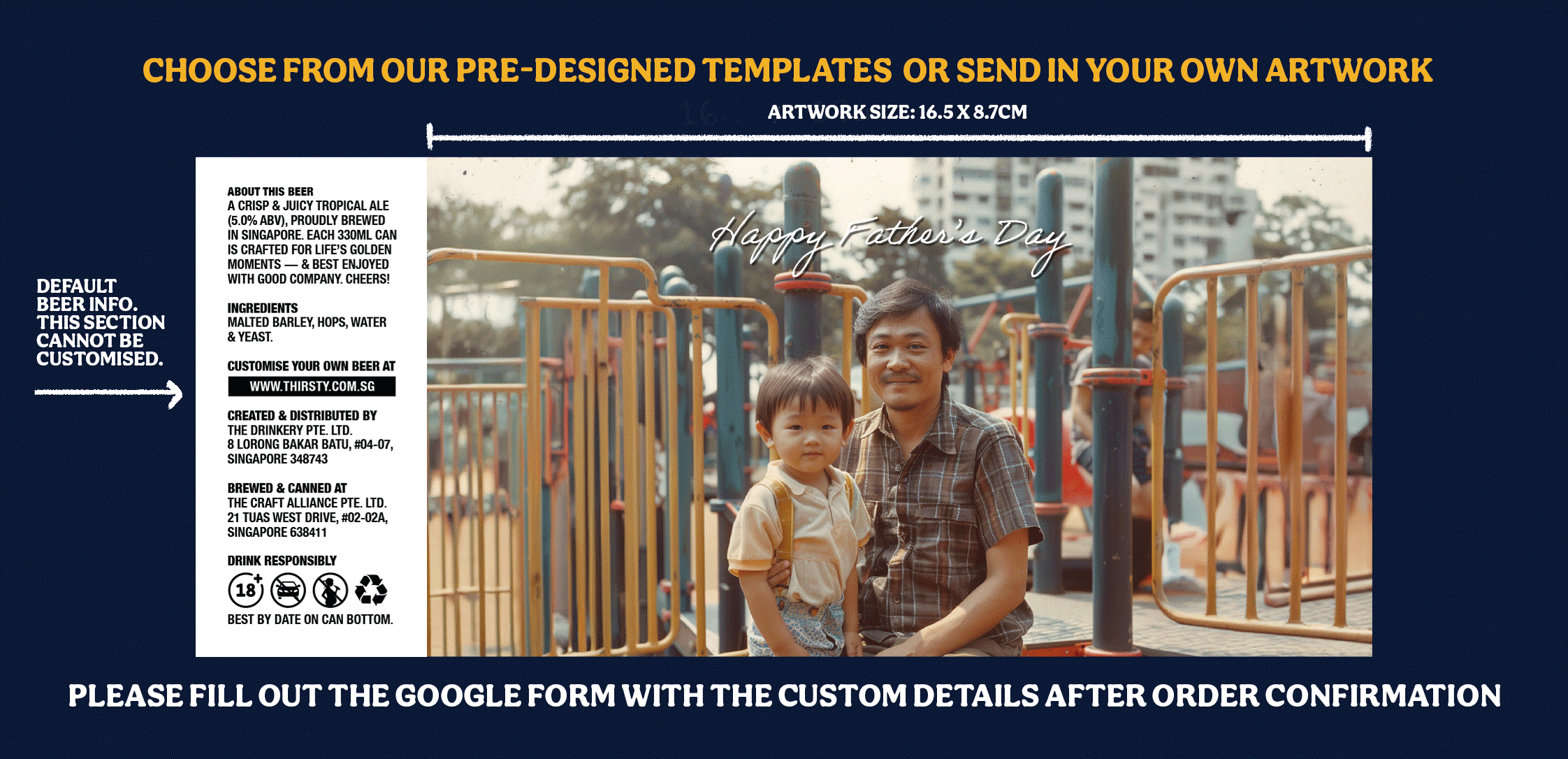 Make your next event truly special and create lasting memories with delicious moments with these custom beer cans! Ready to get started? Simply add your desired quantity to cart and checkout. Then, fill up this form to let us know your preferred template OR attach your own artwork!