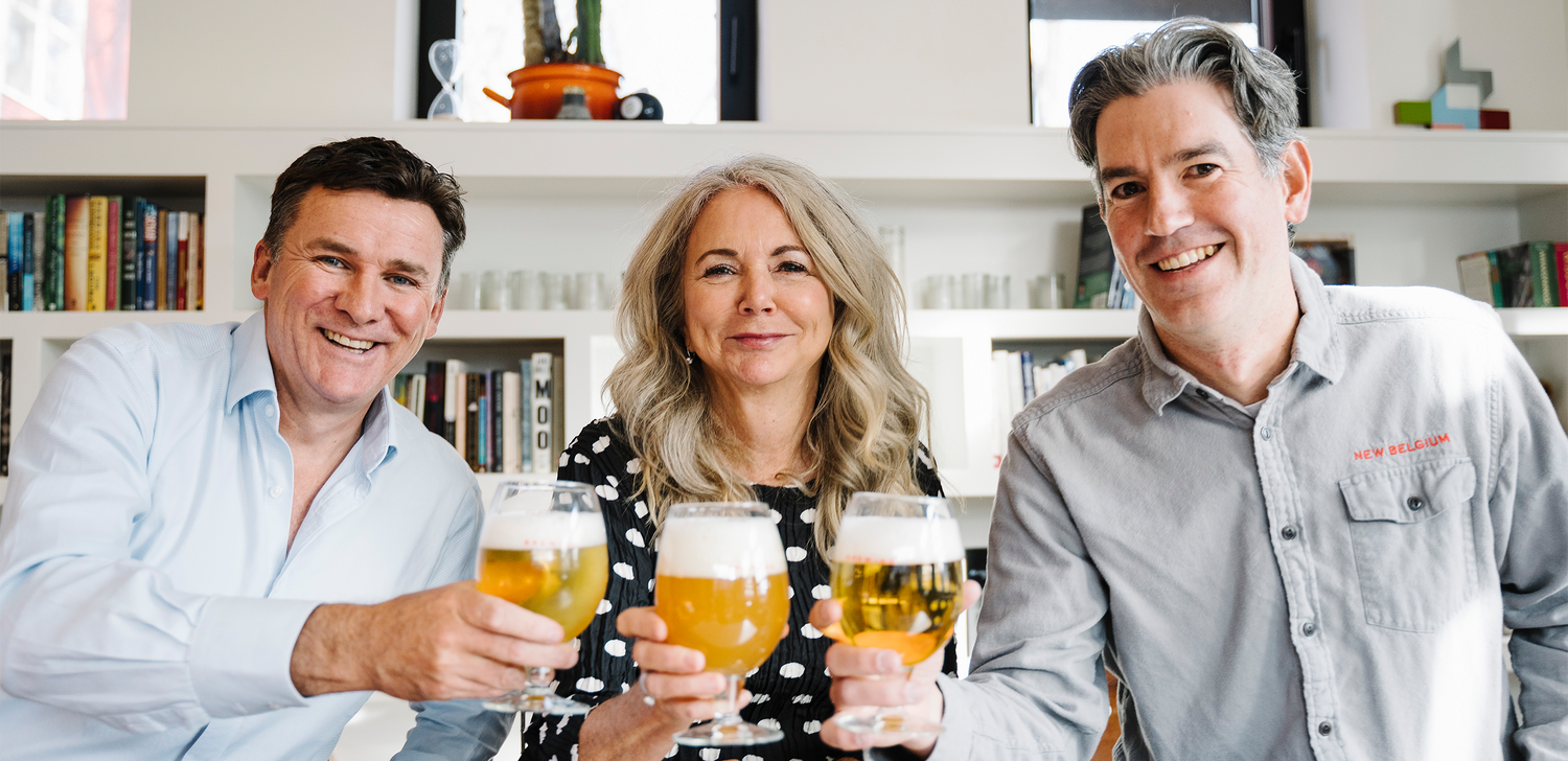 New Belgium co-founders Kim Jordan (center) and Jeff Lebesch (right) with Matt Taper (left), Managing Director of Lion Little World Beverage.