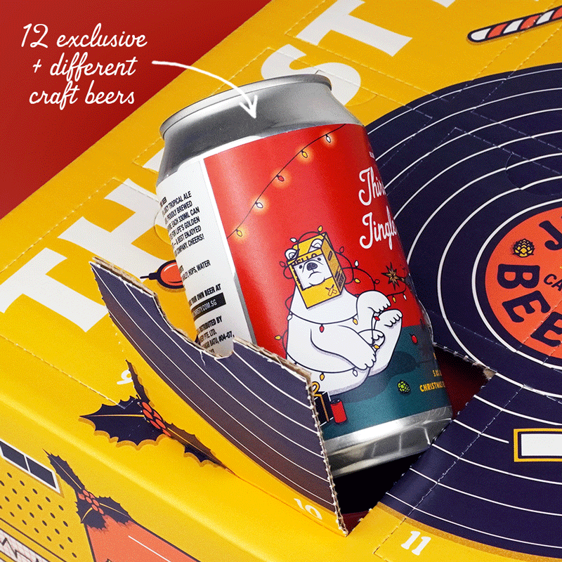 Behind each door hides a different craft beer, curated from new releases and limited seasonal brews from breweries across Australia, America, and Singapore. Look out for twelve cans – two of which are Thirsty’s in-house specials, brewed locally and super fresh.