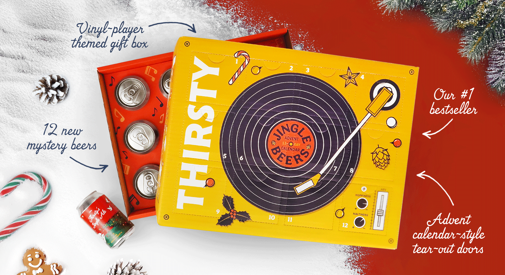 Thirsty’s bestselling Christmas gift box is back for its 11th edition — and it’s ready for same-day delivery! Our elves have packed every box, and this year’s 12‑Day Advent Calendar is filled with a dozen all‑new and exclusive craft beers, each hidden behind the perforated doors of our iconic vinyl‑player–themed gift box. Stocks are limited, so don’t wait!
