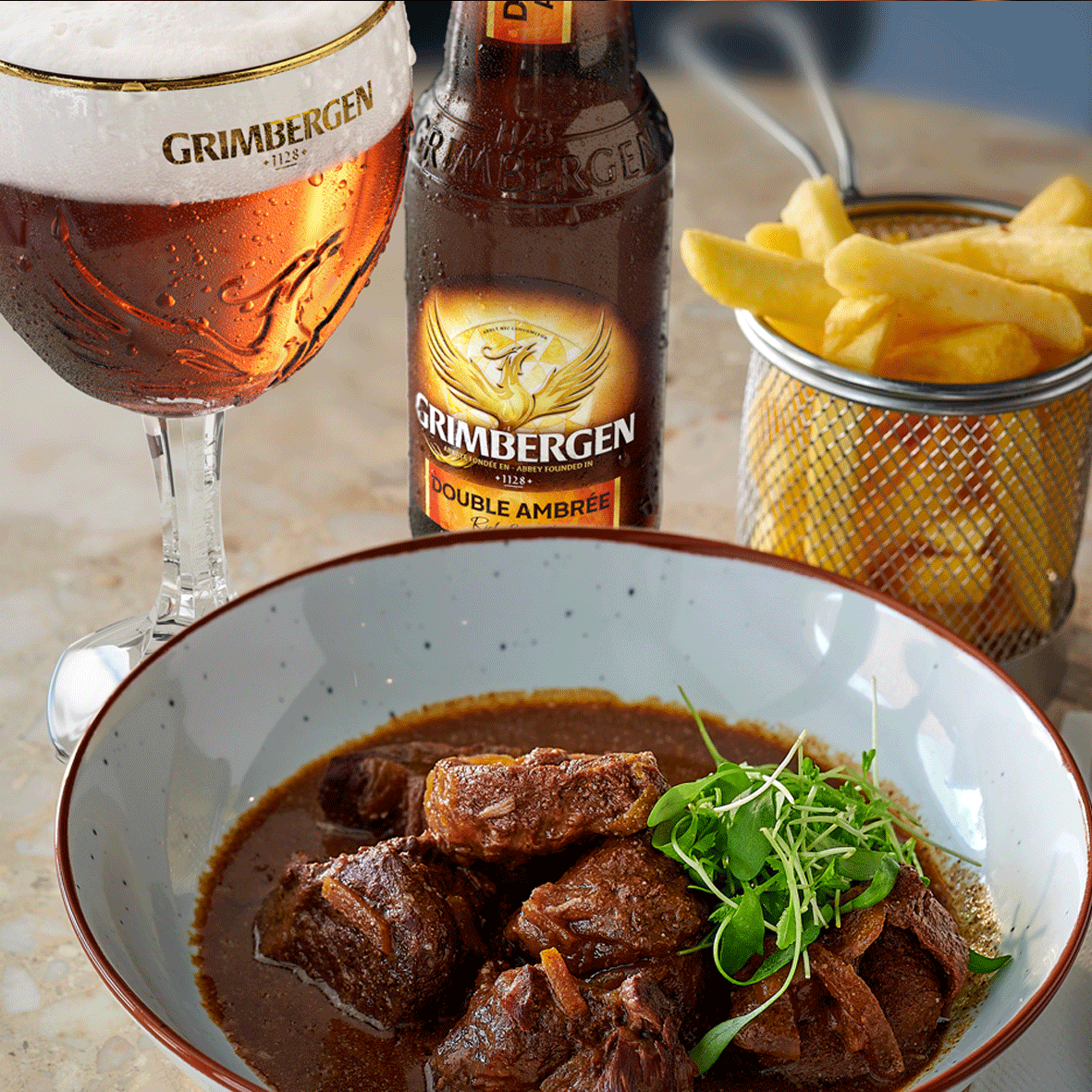 My roots stretch back to the Abbey of Grimbergen, where resilience is religion and brewing is an act of devotion. Pair me with roasted meats, savoury sauces, or any dish that carries the same dark, sweet, and spiced complexity I do. I don’t just accompany your meal — I elevate it, with every silky, amber sip.
