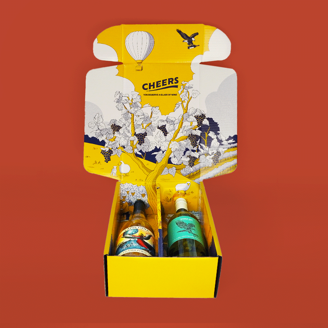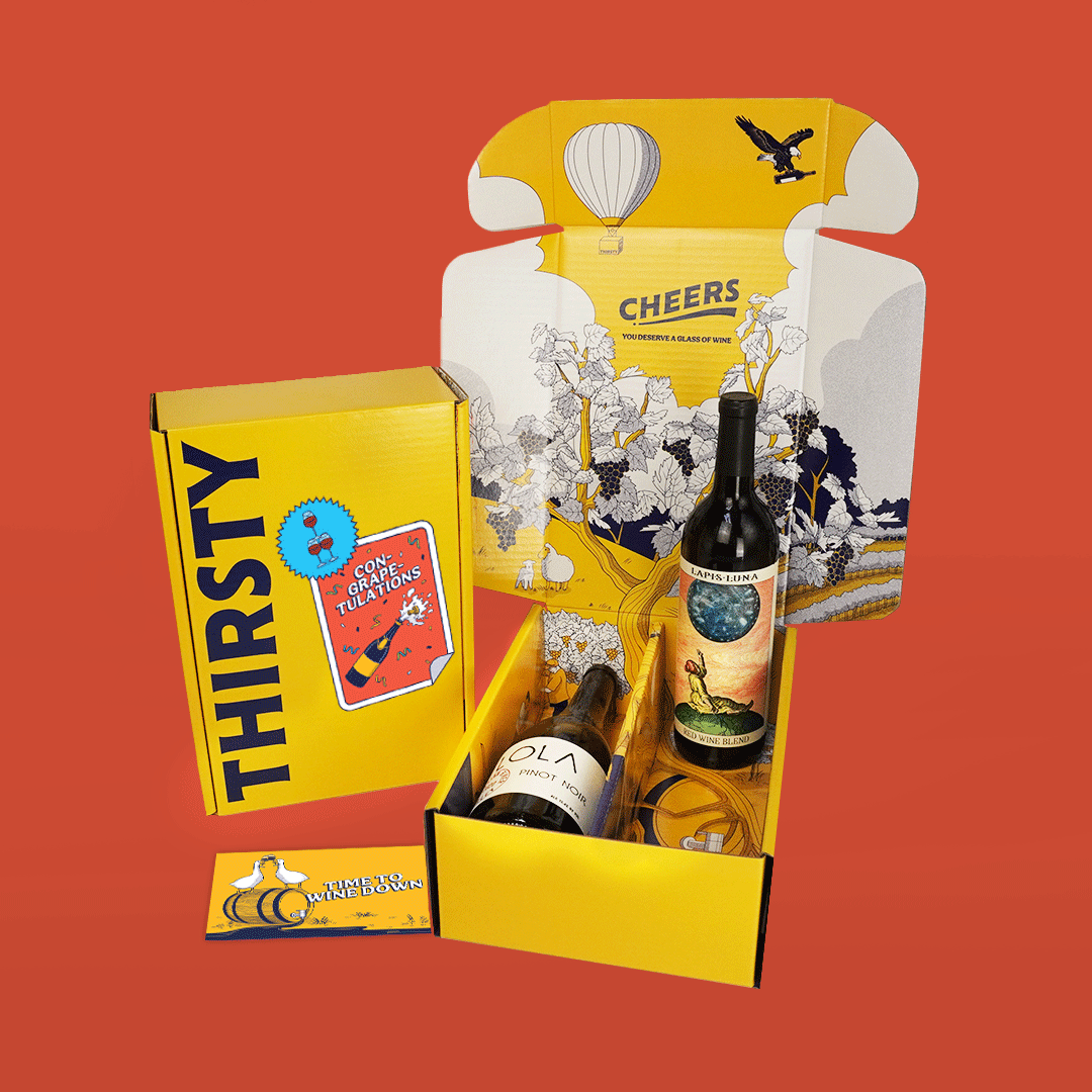🎁 Hand-Illustrated Gift Box: Uncork the exclusivity of our quirky and cheerful gift box that showcases original illustrations of our dream 'Thirsty Wine Yard'.