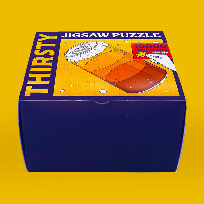 Looking for a playful prank to surprise your friends? The Thirsty 'Jigsaw Puzzle' Prank Gift Box is the perfect choice! Concealed within the jigsaw puzzle packaging lies the signature Thirsty gift box, filled with a variety of delicious canned craft beers of different flavors. It's a hilarious gift that will leave them puzzled before revealing the tasty surprise inside.
